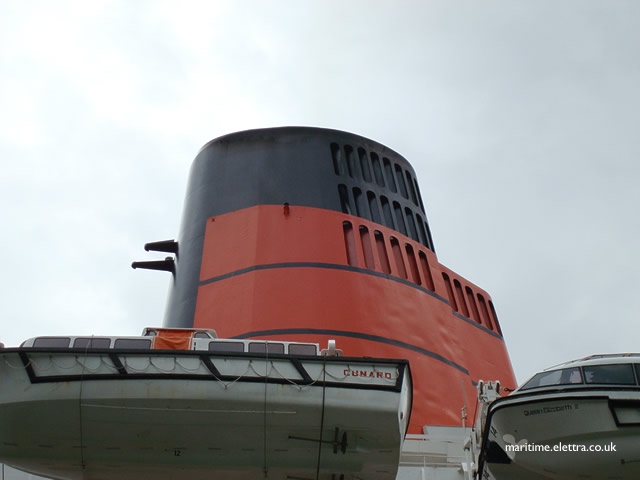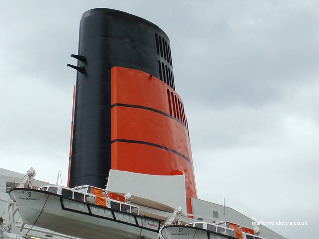 - 69 ft 6 in The height of the QE2's funnel is equivalent to the height of the Great Sphinx of Giza in Egypt