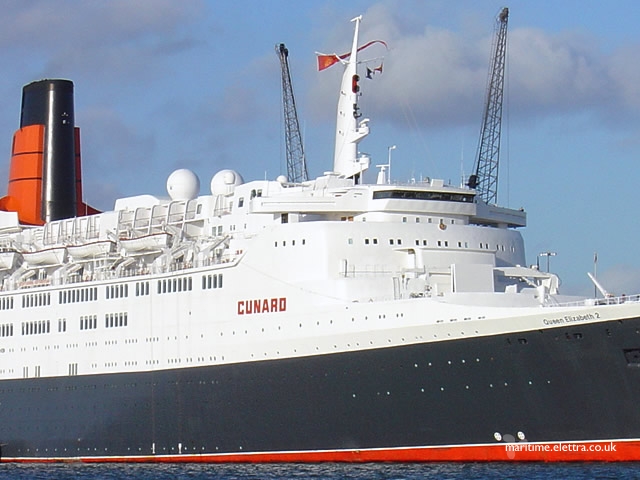 - 3 The QE2 has three Tyfon Whistles fitted to her mast, which are audible for a distance of up to two miles