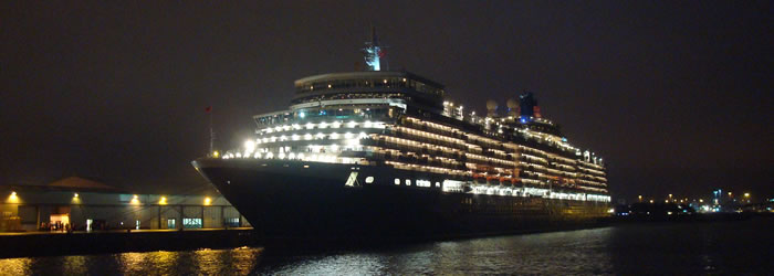 In the evening, just before 9:30pm the Queen Mary 2 left the Ocean Terminal and headed past her running mates to the Upper Swinging Ground. Then following a fireworks display the three ships sailed down Southampton Water, the Queen Mary 2 leading the Queen Victoria and Queen Elizabeth.